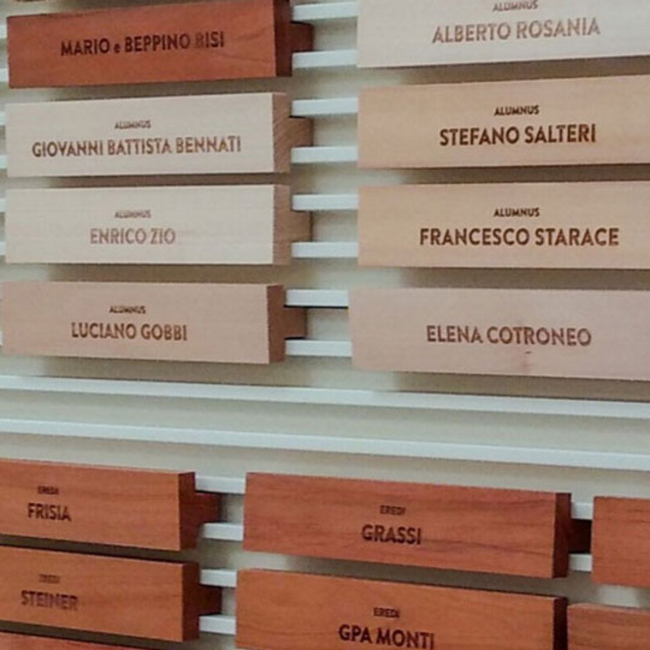 The names of Politecnico di Milano donors are displayed on the walls of the Donors’ Hall at the Rectorate in Piazza Leonardo da Vinci.