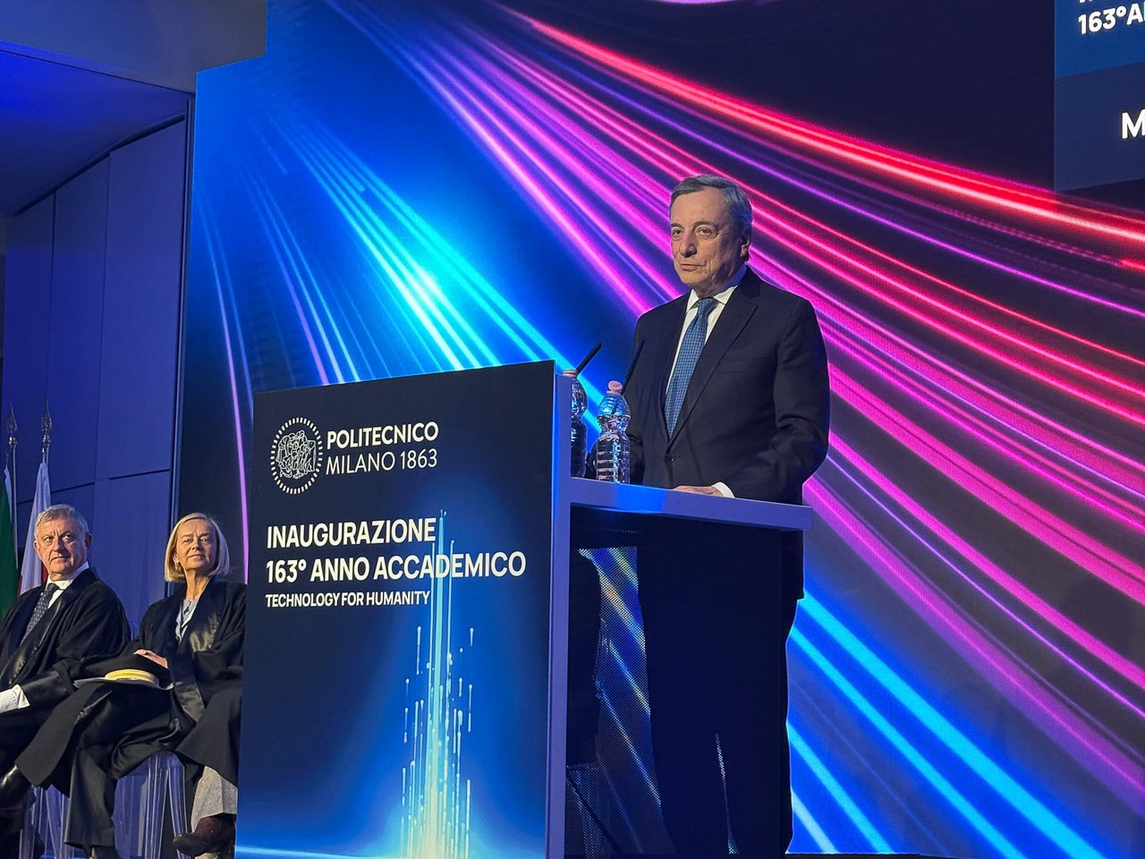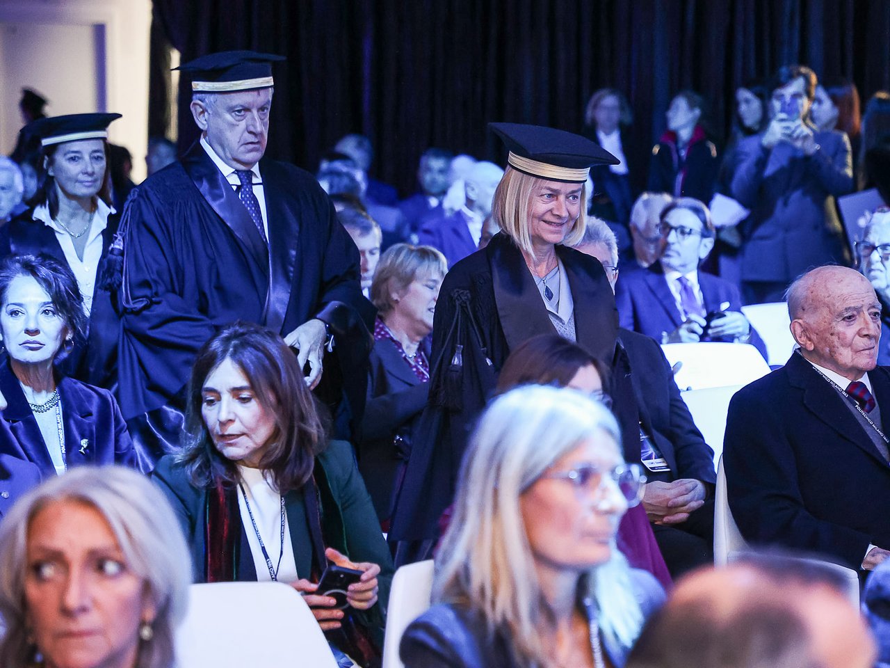 Insieme alla Rettrice, Donatella Sciuto, hanno preso parte alla cerimonia di inaugurazione dell’Anno Accademico Giuseppe Sala, Sindaco di Milano, Alessandro Fermi, Assessore all’Università, Ricerca, Innovazione della Regione Lombardia, Michele Gaetano Giussani, Presidente del Consiglio degli Studenti, Politecnico di Milano, Mario Draghi.